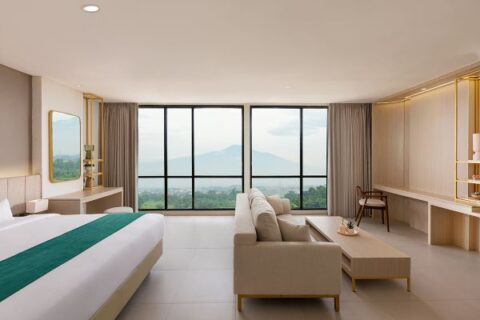 Dari kamar ini Anda bisa menikmati pemandangan kota dan indahnya Gunung Slamet.